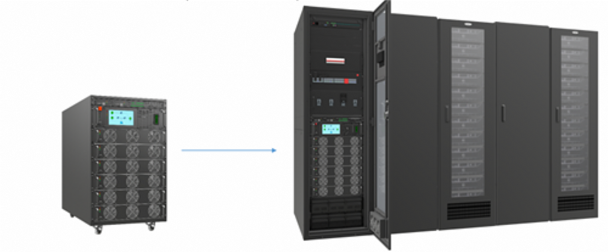 O UPS modular tem crescido rapidamente nos últimos anos, pois oferece opções flexíveis de gerenciamento de energia. Os operadores podem personalizar seus sistemas de energia aumentando vários módulos de energia verticalmente no rack, em vez de conectar UPS comuns, subutilizados e superdimensionados. Isso economiza espaço e dinheiro. Além disso, o design hot-swappable pode reduzir a dificuldade de O&M e as taxas de manutenção.